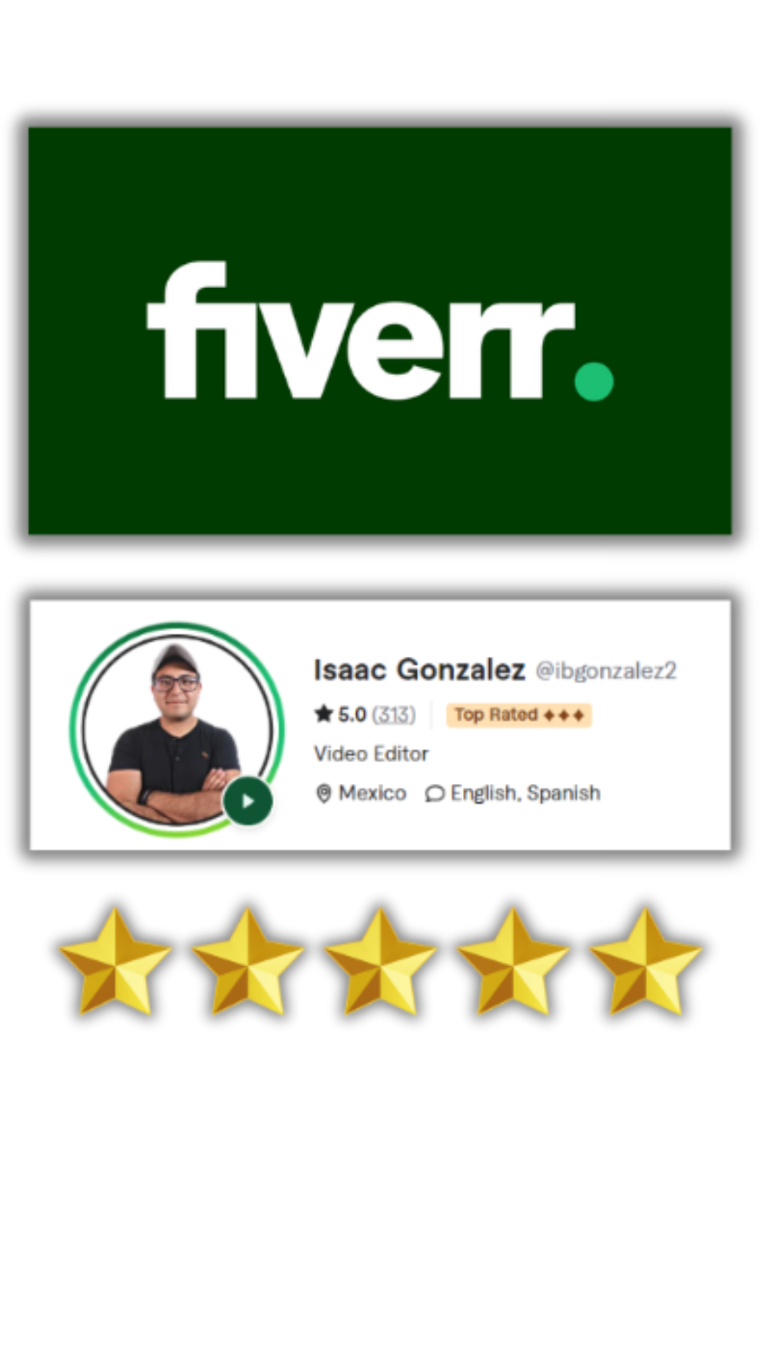Since 2020 I’ve selling video editing services on Fiverr and I’ve bee awarded a Top Rated Seller, this means you can rely on my professional services and high quality edits.
